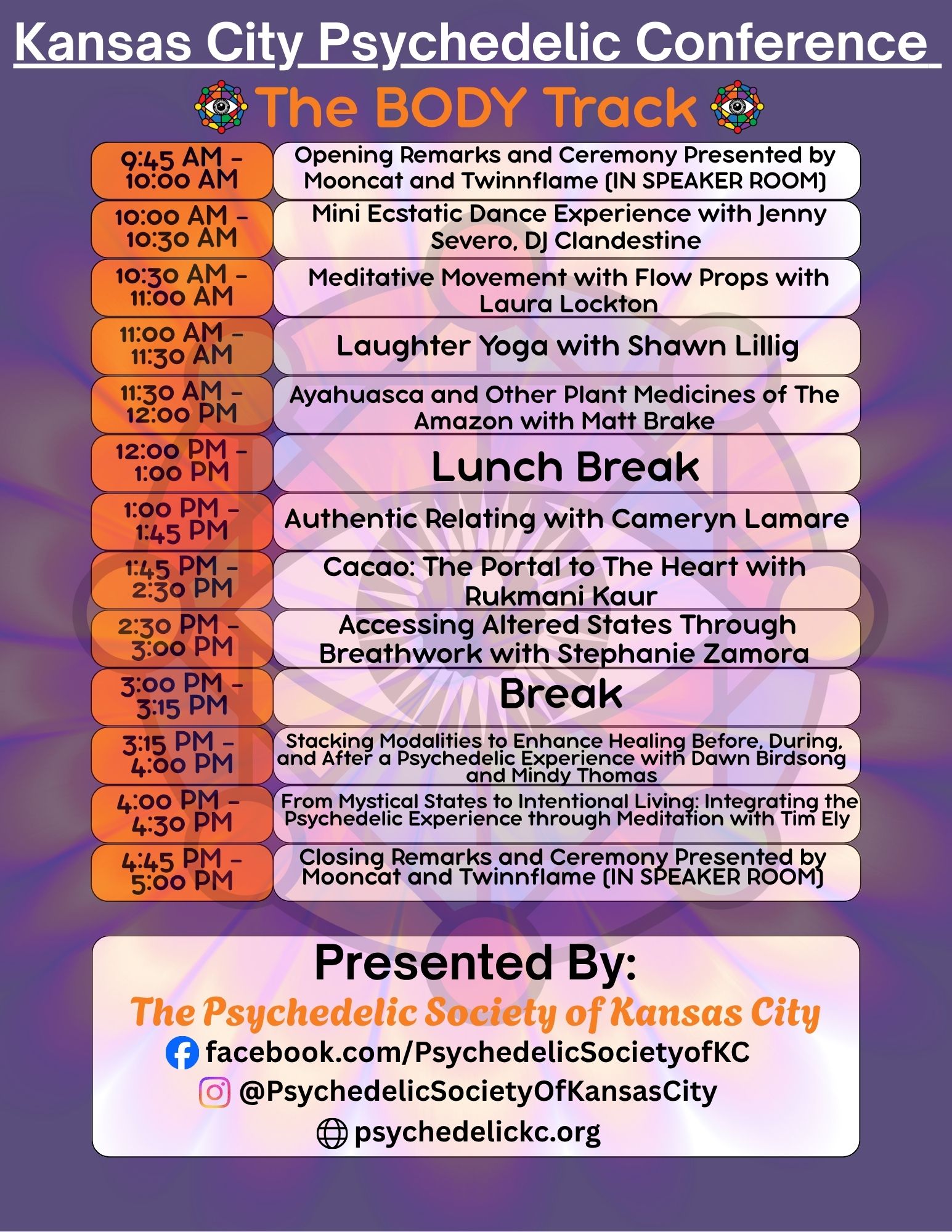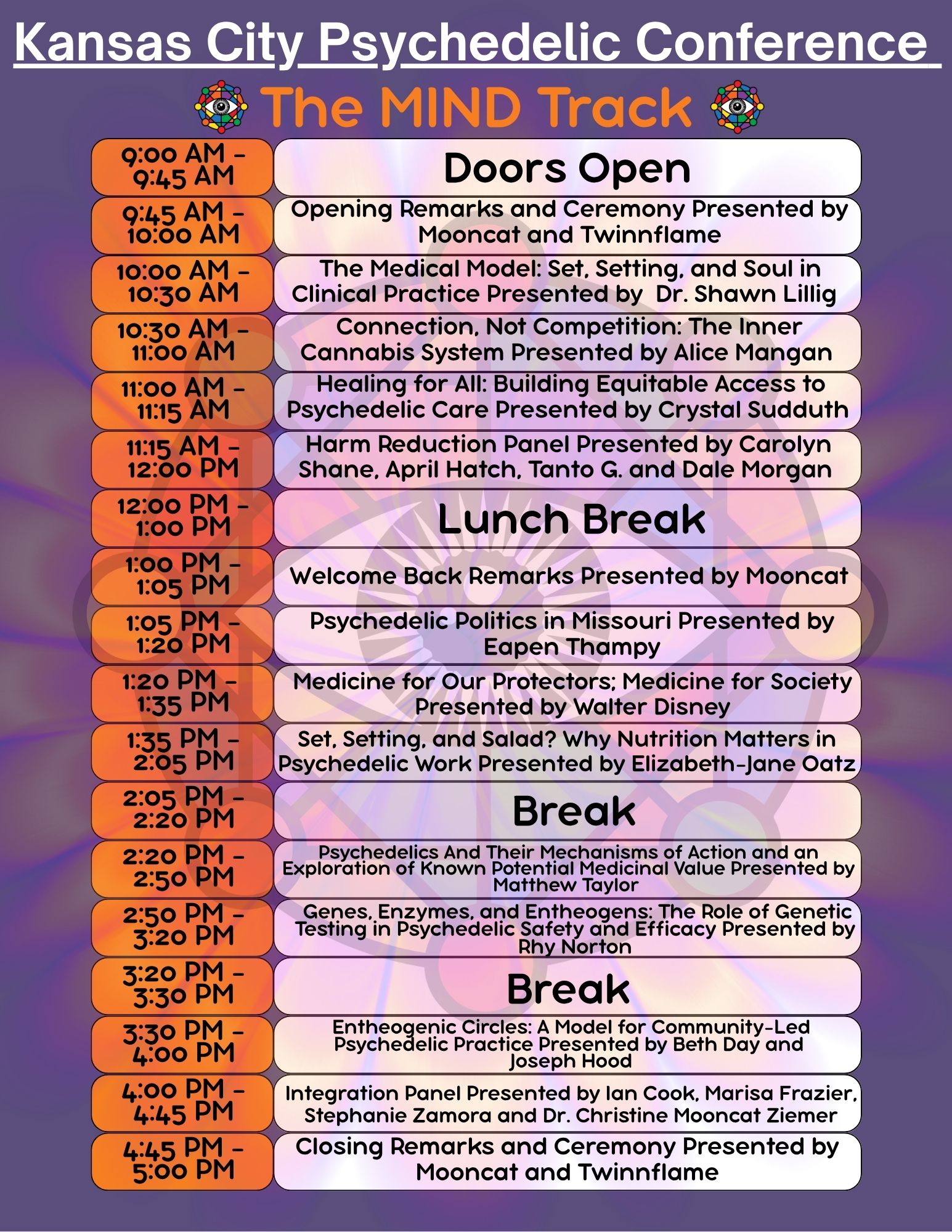 We are grateful to everyone who attended and contributed to making the Kansas City Psychedelic Conference a success. Photos and recordings from the conference will be available soon.